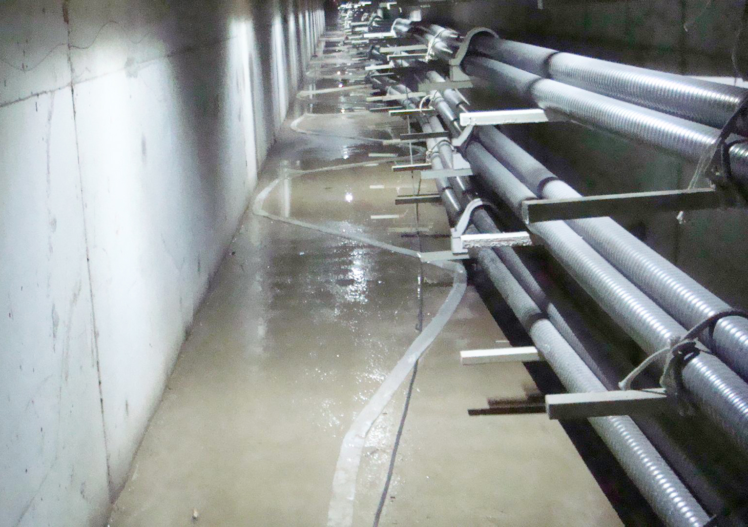 施工縫和沉降裂縫口堵漏水(背水反壓堵漏法):1、堵漏水縫口嵌縫法和注漿法二種方法配套施工,先剔出原漏水縫內松動雜物,清洗沖洗干凈后,即使用速凝止水材料進行抽管、埋管、引水減流作業,凹槽不要一次填滿。以便為嵌縫留出余地,每隔一定的距離埋設一個...