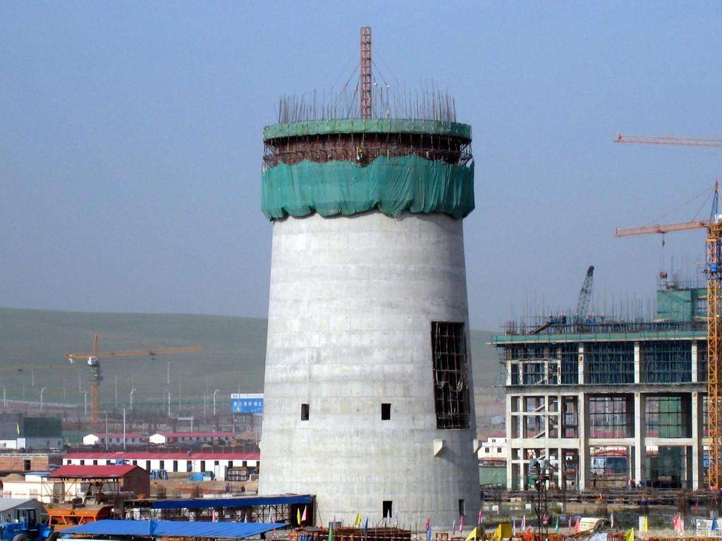 采用筒身內設主井架的垂直運輸方案, 筒身施工模板采用滑模施工工藝, 使得垂直運輸、滑模提升、系統操作都是在井架相關設施上進行。垂直運輸依靠井架兩側的兩套上料吊籠, 同系統包括架裝在井架上的操作平臺系統, 用倒鏈將附著式操作平臺隨施工作業面提...